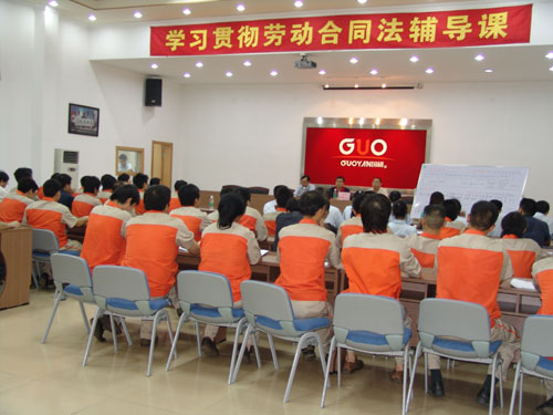 5月9日下午,广州市国砚实业发展有限公司、广州市国研机械设备制造有限公司在总部大会议厅举行了声势浩大的学习《劳动合同法》活动。该活动由公司党支部书记、副总经理王声跃主持,广东注明律师事务所——广东德法理律师事务所、我司常年法律顾问黄文芳主任律师担任主讲。